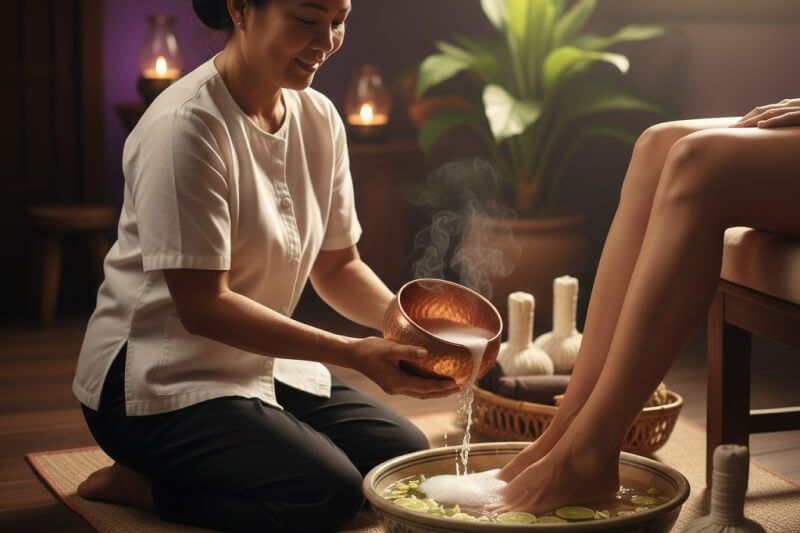 Уже в первых мгновений вы почувствуете, как тепло джакузи снимает волну напряжения, сменяясь успокаивающим ритуалом омовения ног, который дарит ощущение легкости и заботы. Когда теплое масло коснется вашей кожи, наступит момент абсолютного покоя и полной безмятежности.-