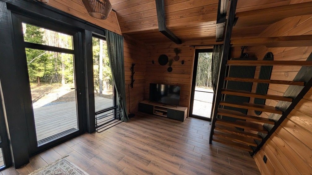 Засыпайте и просыпайтесь с волнующими видами на Нарочанский лес — густой, ароматный, почти сказочный. Маленький A-frame домик создан для тех, кто хочет провести время в атмосфере уединённости: идеально подходит для пары или небольшой семьи, которые мечтают на пару дней спрятаться от города, сблизиться и просто побыть вместе в уютном пространстве.-