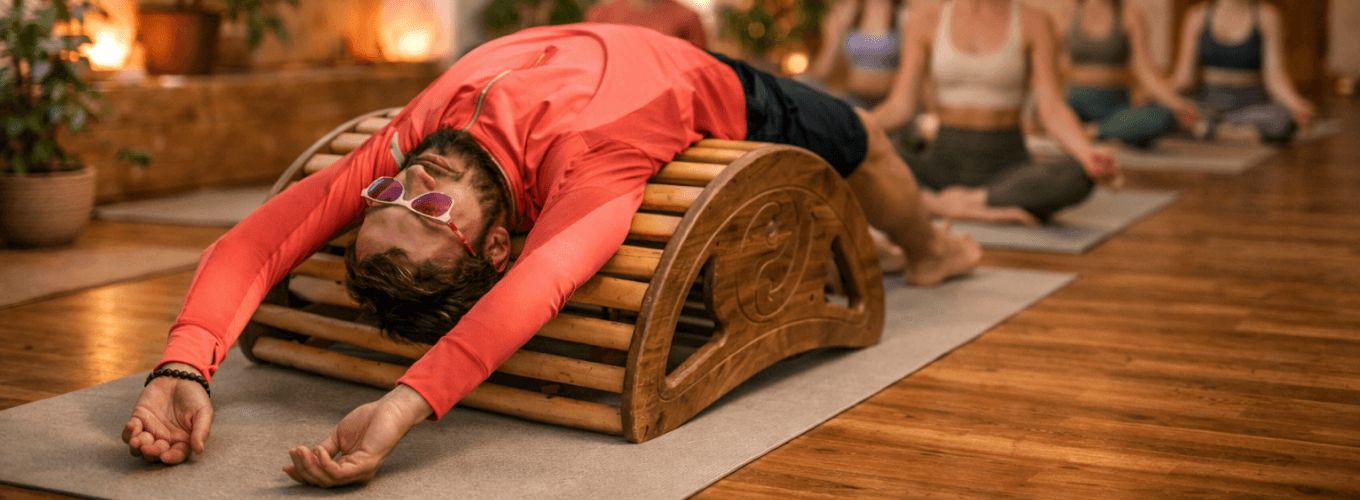 Мягкая практика для снятия напряжения и восстановления тела. Во время сеанса тело комфортно располагается на арке, позвоночник естественно вытягивается, мышцы расслабляются, дыхание становится ровным и спокойным. Практика помогает снять зажимы, улучшить подвижность спины и подарит ощущение лёгкости и отдыха уже за одно занятие.