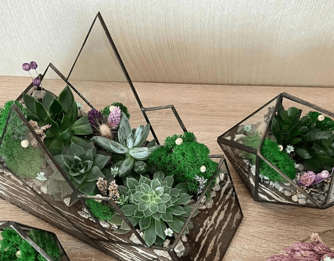 На мастер-классе владелец сертификата познакомится с разными вариантами создания композиций — от компактных до масштабных. Занятия проходят в групповом и индивидуальном формате, подходят взрослым и детям от 5 лет и будут одинаково интересны как тем, кто делает первые шаги в создании флорариумов, так и тем, кто уже имеет какой-либо опыт.