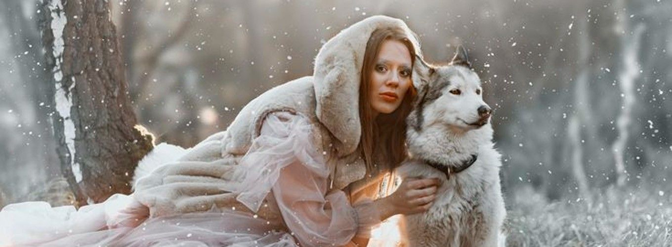 Прогулка и фотосессия с белыми канадскими «волками» для компании от 1 до 6 человек.