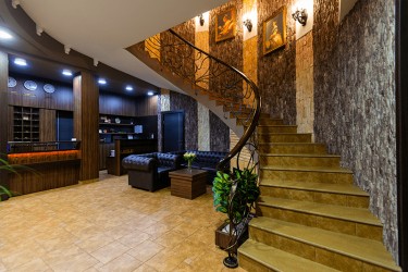 Уже на входе в гостиничный комплекс вы поймете, что правильно поступили, выбрав свидание за городом. Небольшое 3-этажное здание больше напоминает средневековый замок, чем гостиницу. Внутри «М-отель» выглядит не менее впечатляюще. Дизайн банкетного зала перенесет вас в уютную деревушку одного из английских графств. Каменные и деревянные элементы, широкая лестница, уютный камин… При всем обилии роскоши комплекса его помещения достаточно светлые и просторные.-