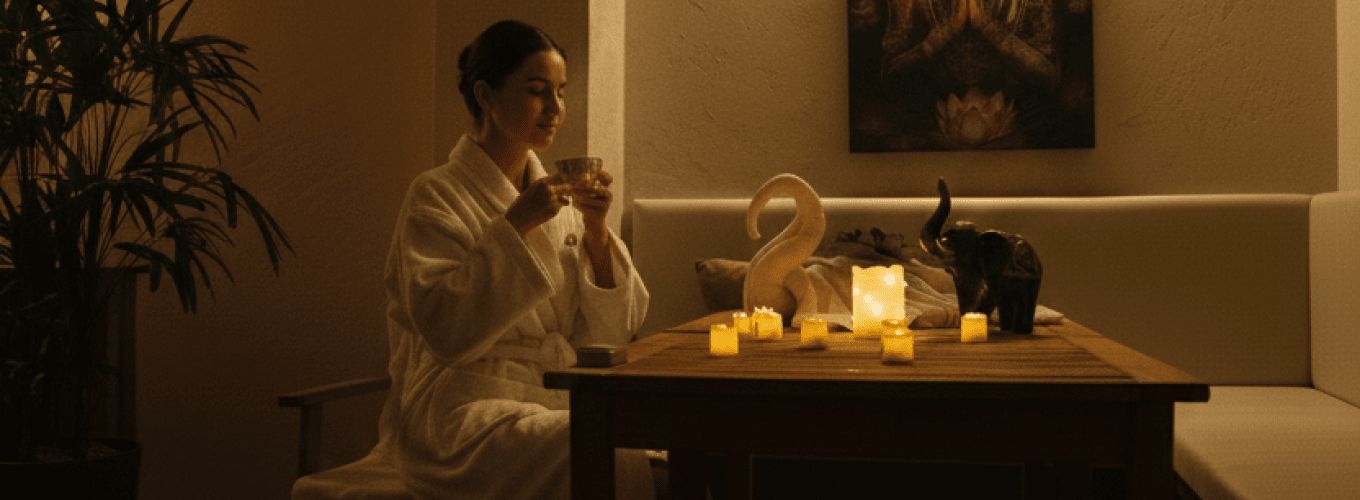 Тепло сауны или хаммама плавно подготовит тело, омовение ног поможет отпустить усталость, а массаж шейно-воротниковой зоны снимет напряжение в шее и плечах. Финальное чаепитие мягко закрепляет ощущение лёгкости и внутреннего комфорта.