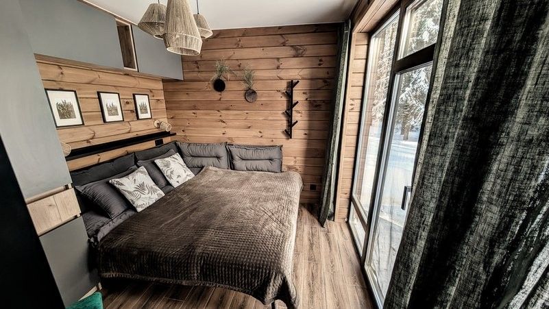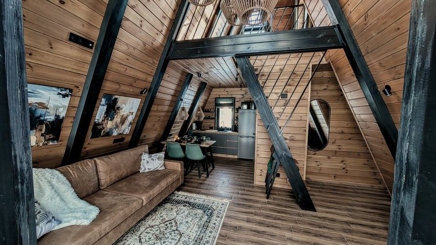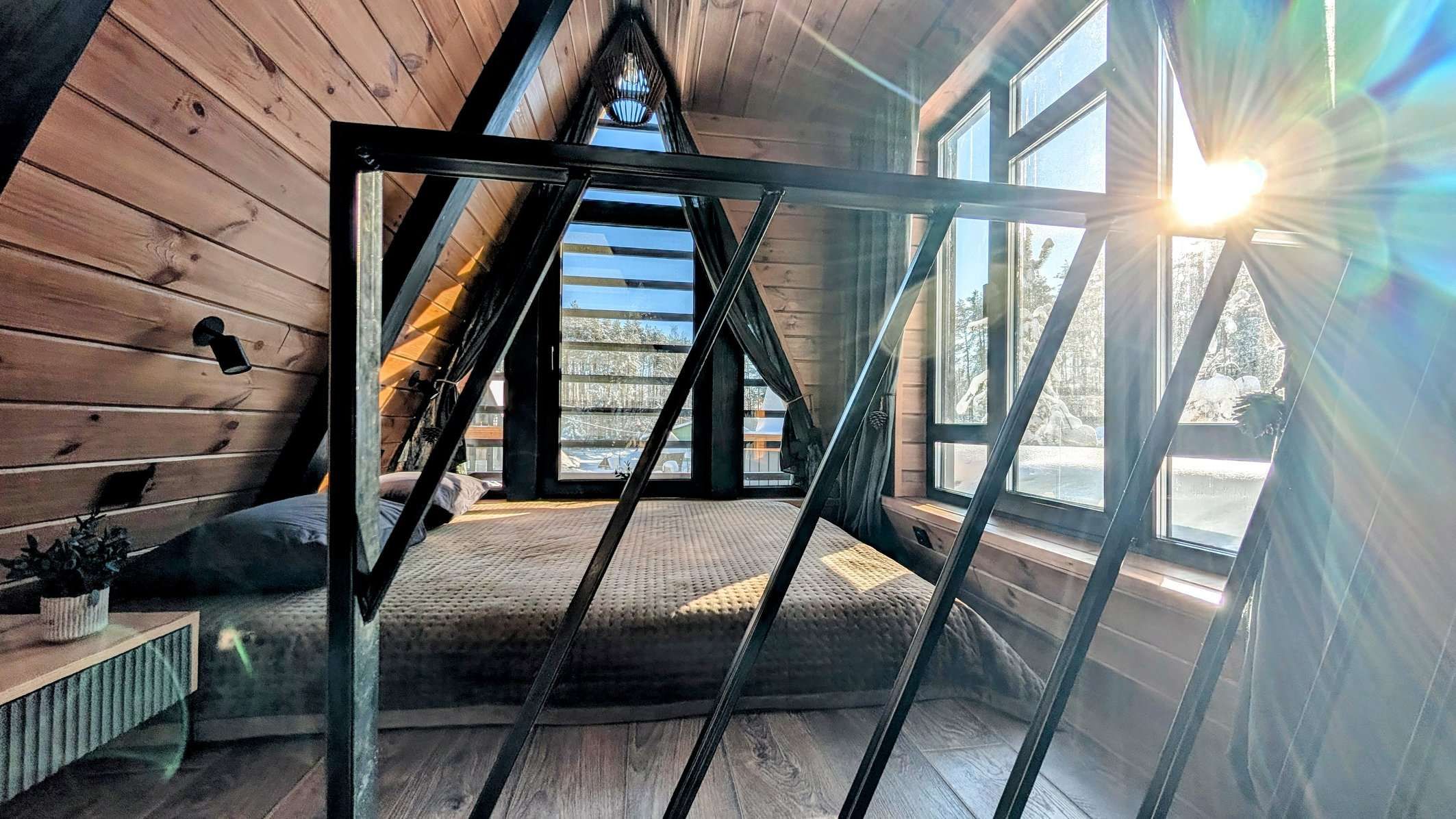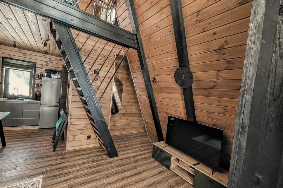Засыпайте и просыпайтесь с волнующими видами на сказочный Нарочанский лес. В двухэтажном домике A-frame с 1 спальней и гостиной могут разместиться 1-2 пары, или семья с детьми. В A-frame с 2 спальнями комфортно разместятся 2-3 пары или большая семья с детьми.